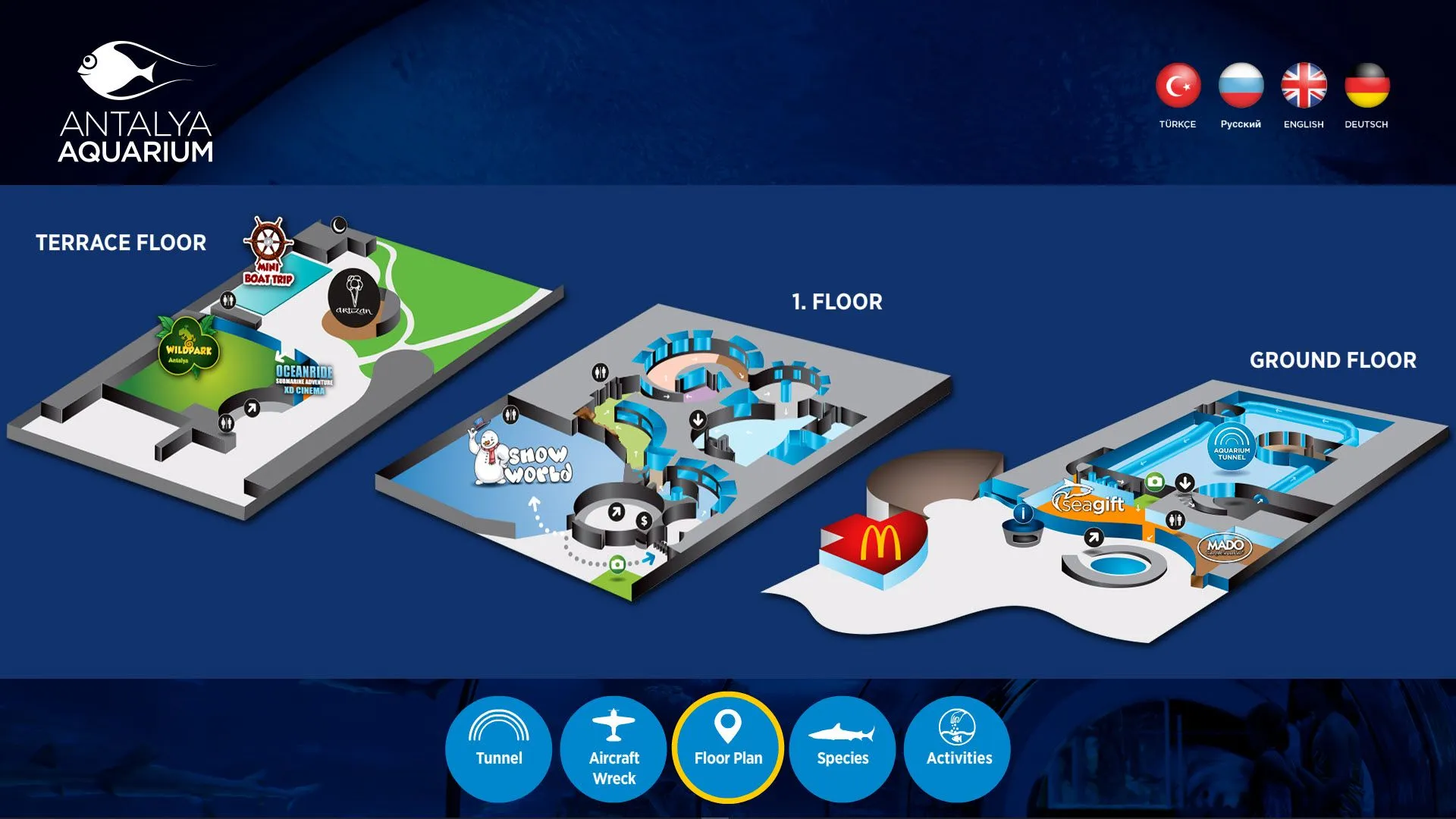 Antalya Akvaryum'un değerli ziyaretçileri için Tanıtım ve Bilgilendirme Kiosk Uygulamasını oluşturduk.